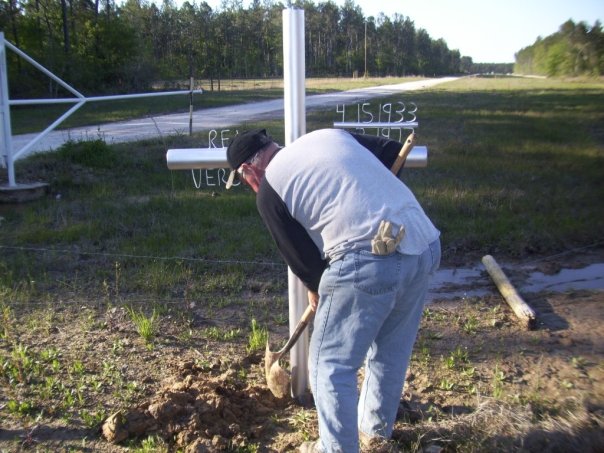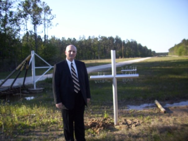 - Me beside Bro. Bean’s Memorial marker between Starks & Lunita, LA
