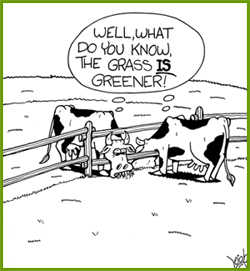 Erma Bombeck entitled one of her books: The Grass Is Always Greener Over The Septic Tank.